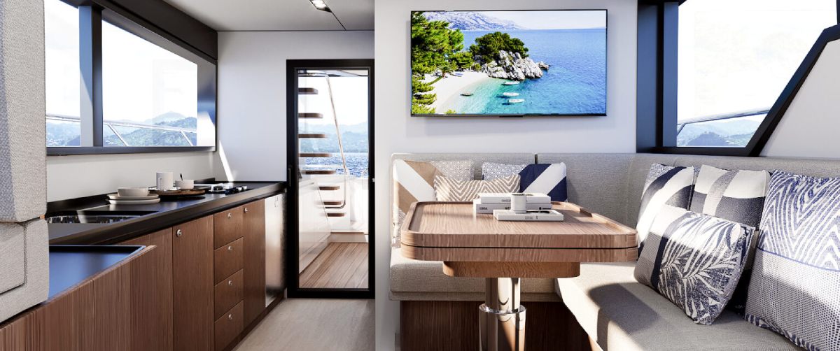 A modern redesign of a 12-meter motorboat, blending style with smart functionality